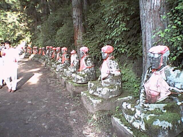 お地蔵様の道を通り、丘の上のお墓に入ります。お墓の一番奥にえんま様が待ってます。
