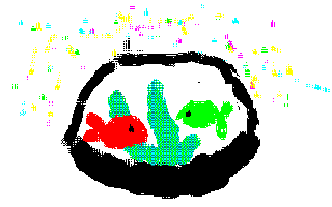 その中から、かざりが、飛び散った。 私は、しばらくぼうぜんとしてましたがお母さんをよんでかだずけた。 魚は、糸でつながれてたし、ガラスも、多少崩れただけなのでそこの部分をくっつけて、また、一番上の引き出しにしまった。