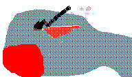 1時間ほどおいかけっこと、かくれんぼの決闘が続き・・・ようやくヘビも、コロンちゃんもへとへとになりました。 ヘビは、「ガオォ〜なんてしぶといんだぁ〜」なーんていってます。 それでもコロンちゃんは、最後の力をふりしぼって、 「よいしょ!よいしょ!」と、二つの道のどちらか一つに張っていきました。でもその時点では、その道が間違っていること、この道を間違えると大変なことになることをコロンちゃんは、全然知らないのでした。
