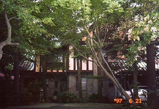 一階の石造、二階のハーフティンバー、やや外に反り返った屋根が特徴ですが、 木々に遮られてあまり見えないのが残念です。(藤沢市鵠沼松ヶ岡)