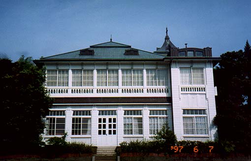 東伏見宮依仁親王の別邸として建築され、昭和27年に横浜カトリック司教館が買い取り 翌年イエズス孝女会修道院に譲渡されました。この建物は何度か補修されているようで 上の最新の写真は、近代建築ガイドブック関東編(P.158)の写真とも、総覧日本の建築2(P.413)の写真とも 微妙に違います。現在は室内楽のコンサートホールとして使われているようです。撮影日も女性コーラスが流れていました。(葉山町堀内)