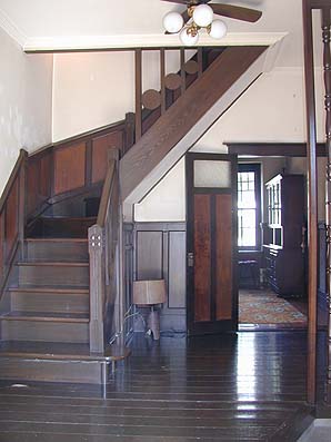 カーブしながら上っていく階段です。段々小さくなる丸の意匠が面白いです。二階は公開されませんでした。