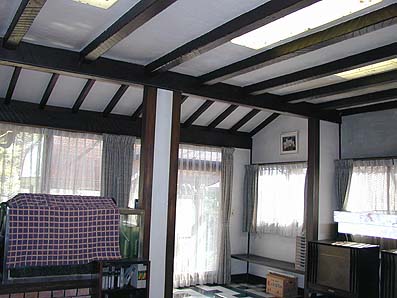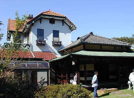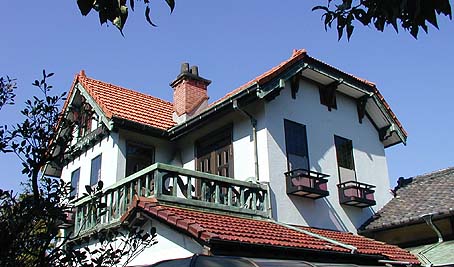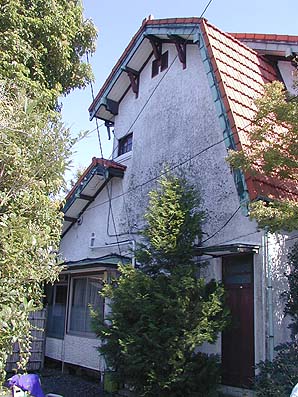 窓は新しいものに替えられていますが、フランス瓦や煙突、唐草模様のベランダはいい雰囲気です。