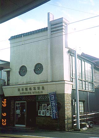 江の電から見えます。丸窓や左の出窓など、かなりおしゃれです。 看板建築としては、非常に洗練されたデザインと思います。(鎌倉市腰越)
