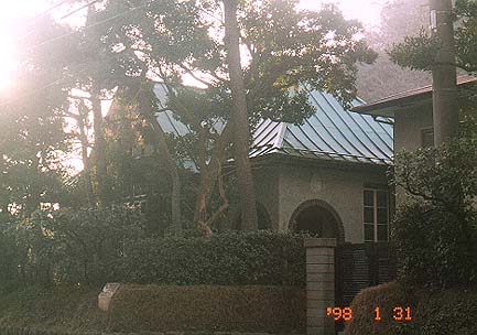 鶴岡八幡宮の左手にあります。 木々の間から見える亜鉛引鉄板瓦棒葺きの青緑の屋根と、 ドイツ壁の灰色が重厚な印象を与えます。 鎌倉市に残る関東大震災前の建築として貴重だそうです。(鎌倉市雪ノ下)