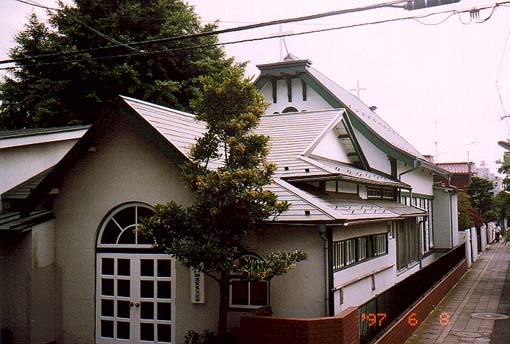 全体的には地味な建物ですが、屋根やひさしが複雑に切れ込んでいます。 小町通りを駅から八幡宮へ向かって歩き、途中の路地を左に曲がるとあります。 (鎌倉市小町二丁目)