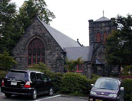 近くの大谷川産の石積みの落ち着いた雰囲気がいい教会です。