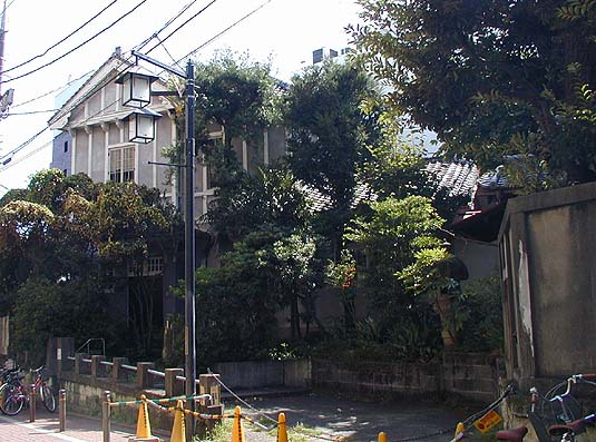 池上通りのみずほ銀行の角を曲がって、坂を上ると二股になっており、そのまん中に建っています。 この辺りのランドマークとして残ってほしいです。