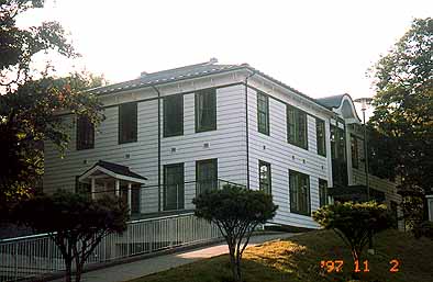 明治28年当時は海に面しており、別荘地を思わせる風景だったそうで、 与謝野鉄幹・晶子、高浜虚子が詩歌を残しています。 細菌検査室は野口英世が検疫医官補として勤務していたことがあり、 野口英世ゆかりの研究施設としては日本に唯一現存するものだそうです。 (金沢区長浜)