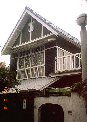 黒い下見板張り、窓ガラスの白く細い桟が特徴的です。(逗子市逗子1丁目)