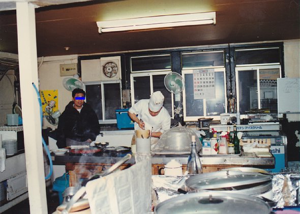 若かりし頃の管理人の写真が出てきました。元の写真が逆光で真っ黒でソフトで精一杯補正してもこんなものでした。レジの機械はありましたが、壊れていたので電卓でやってました。